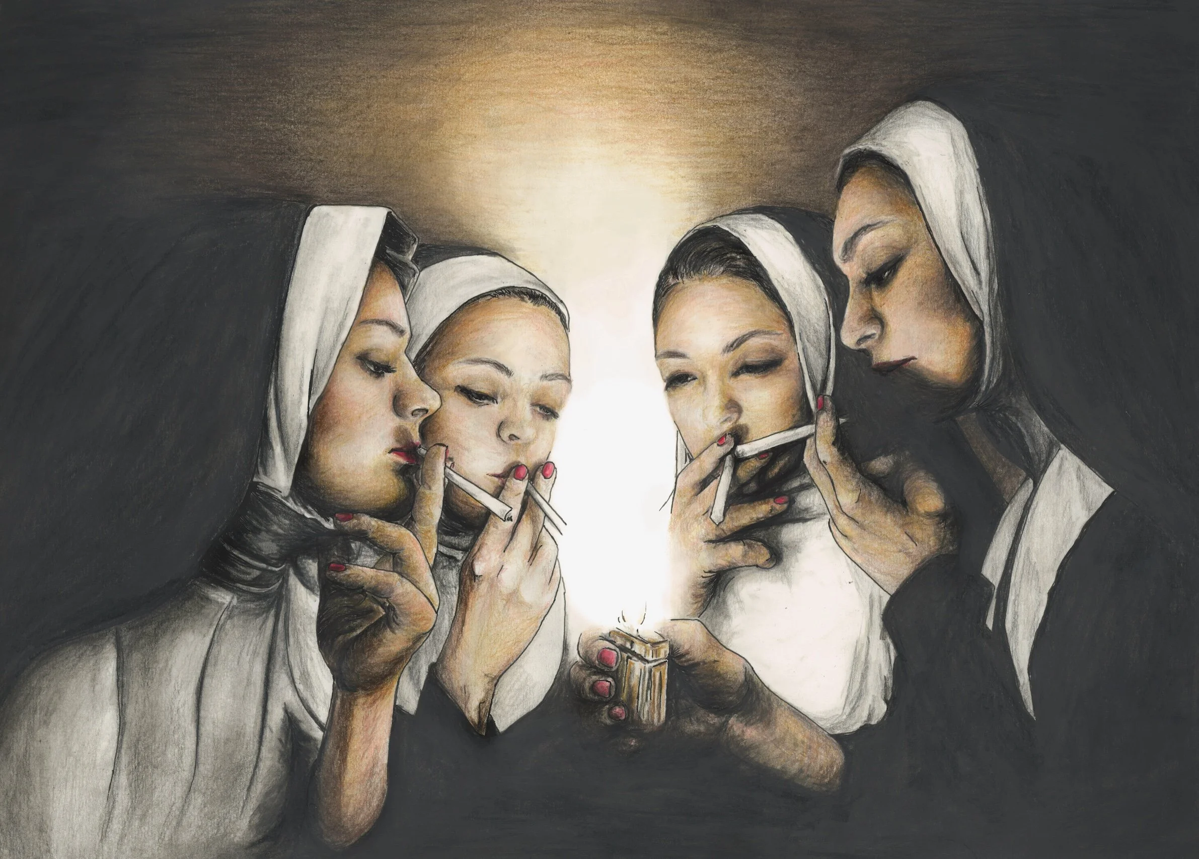 Sisterhood explores the figure of the nun as a site of tension, transformation, and reclamation. Historically, the convent offered women a paradoxical position: a life governed by patriarchal authority, yet one that provided a degree of independence and education otherwise out of reach. Within this contradiction, the nun becomes a compelling lens through which to examine how women have navigated, resisted, and ultimately redefined the roles imposed upon them.